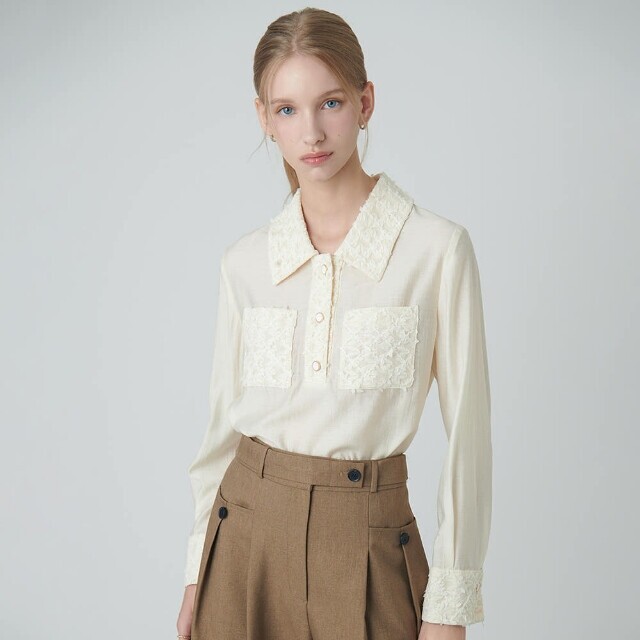 레이스 배색 포인트 블라우스S243m258