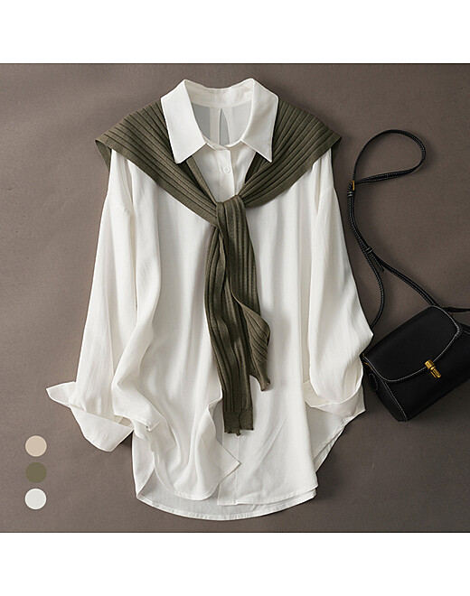 - 화세 루즈와이드셔츠+숄SET_HB5FSH007C