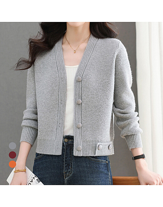 - 화세 하프배색탑버튼가디건_HL5WCD009C