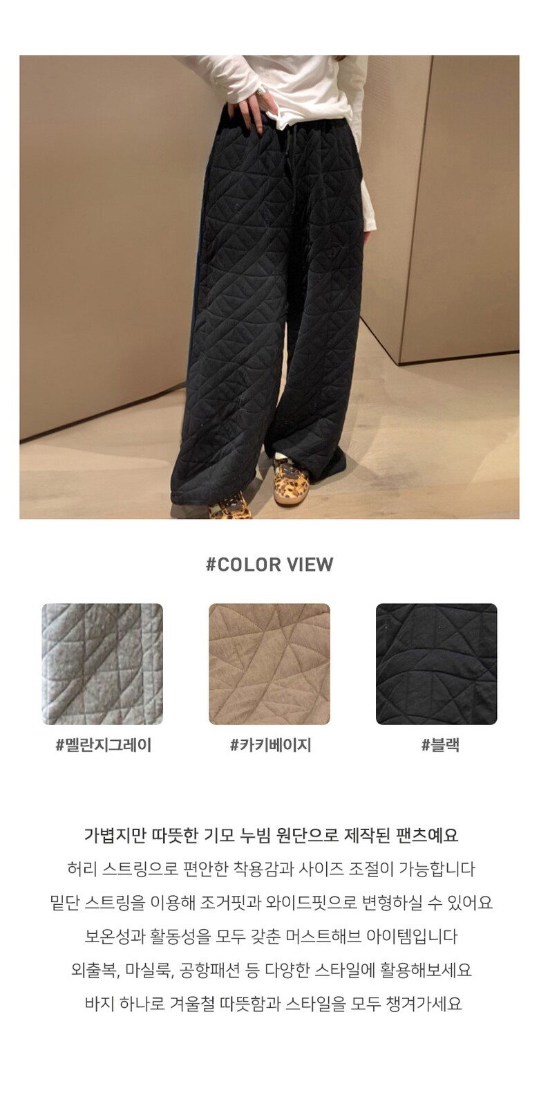 포포 퀼팅 코지 빅 와이드 기모 팬츠