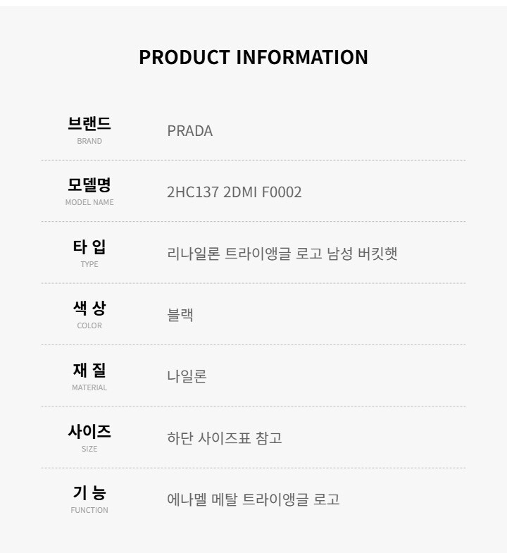 프라다 2HC137 2DMI F0002 리나일론 트라이앵글 로고 버킷햇