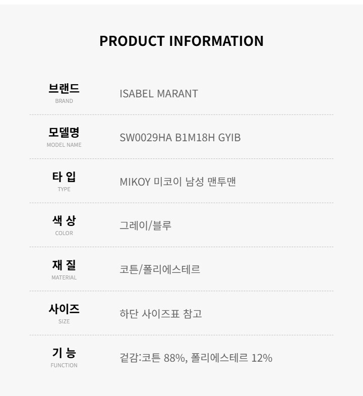 이자벨마랑 SW0029HA B1M18H GYIB MIKOY 미코이 남성 맨투맨