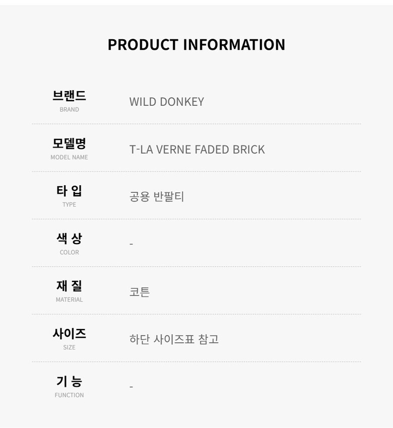 와일드동키 T-LA VERNE FADED BRICK 공용 반팔티