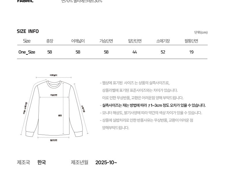 1. 제품 소재 (섬유의 조성 또는 혼용률을 백분율로 표시, 기능성인 경우 성적서 또는 허가서) | 면70% 폴리에스테르30% |