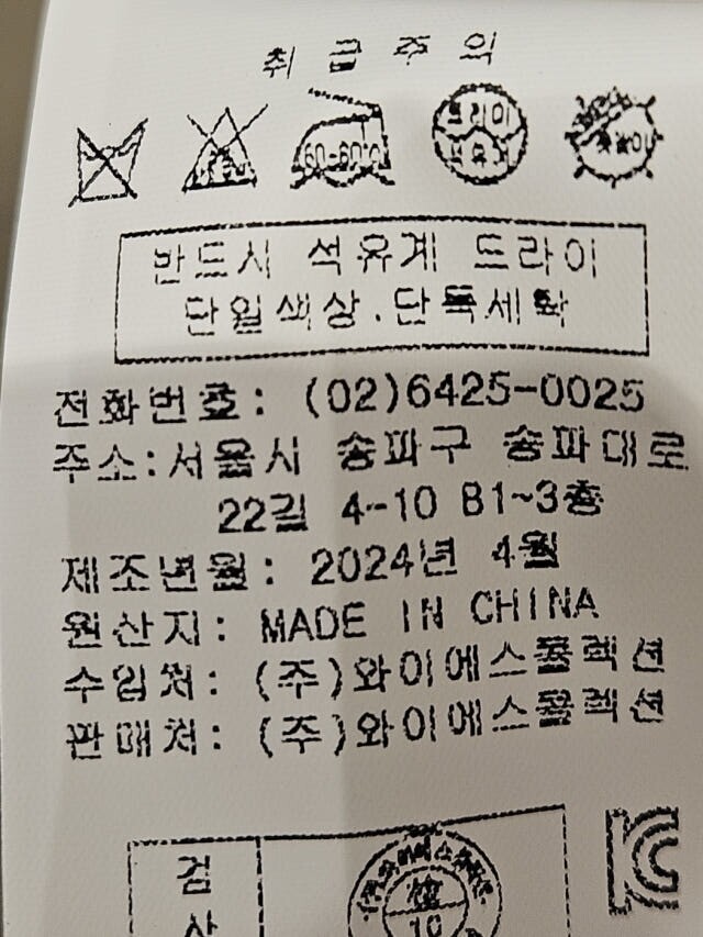| 6. 세탁방법 및 취급시 주의사항 | 상품상세참조 |