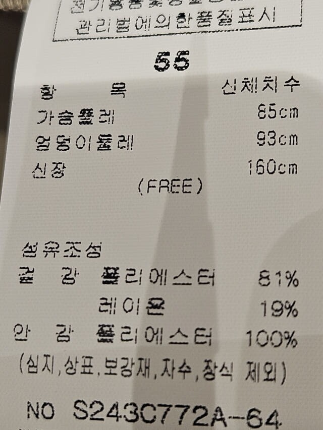 | 1. 제품 소재 (섬유의 조성 또는 혼용률을 백분율로 표시, 기능성인 경우 성적서 또는 허가서) | 상품상세참조 |