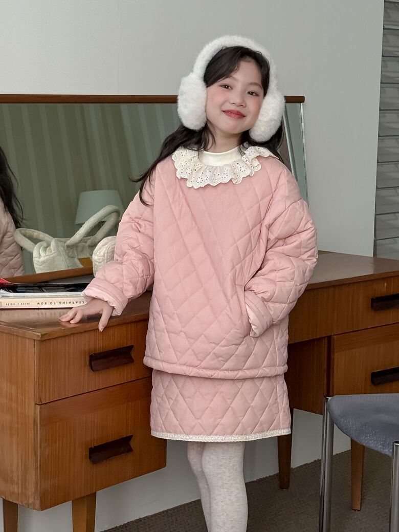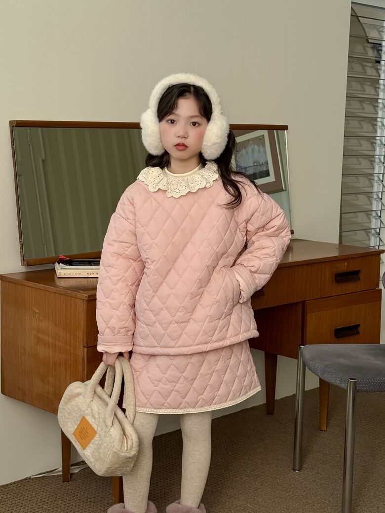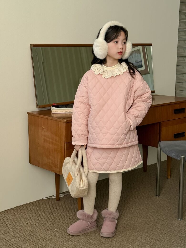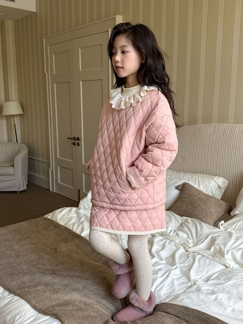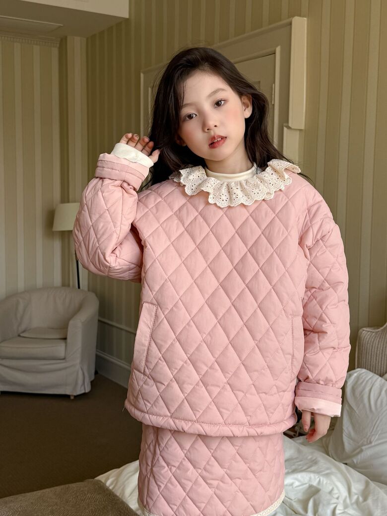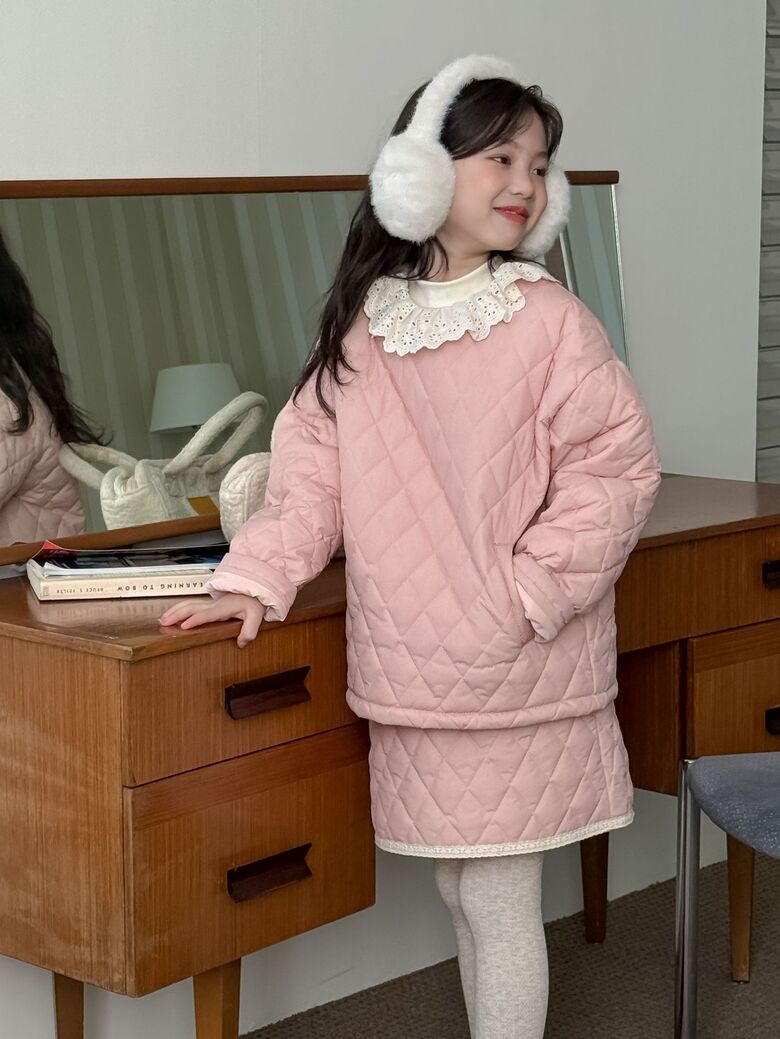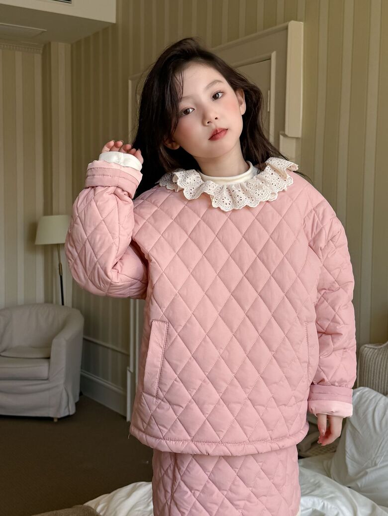 [예약발송] 프릴 레이스 퀼팅 상하복 세트 R15483