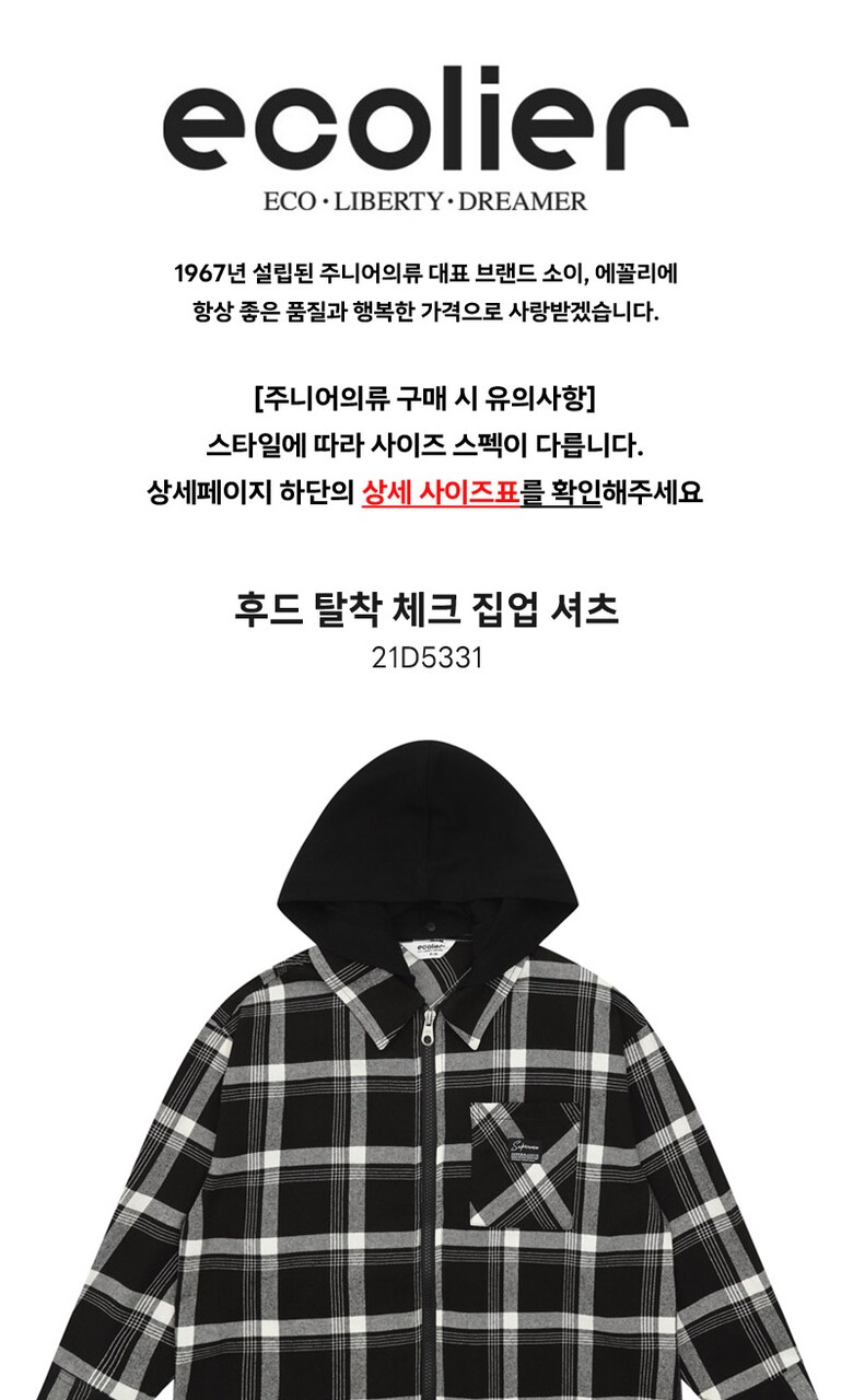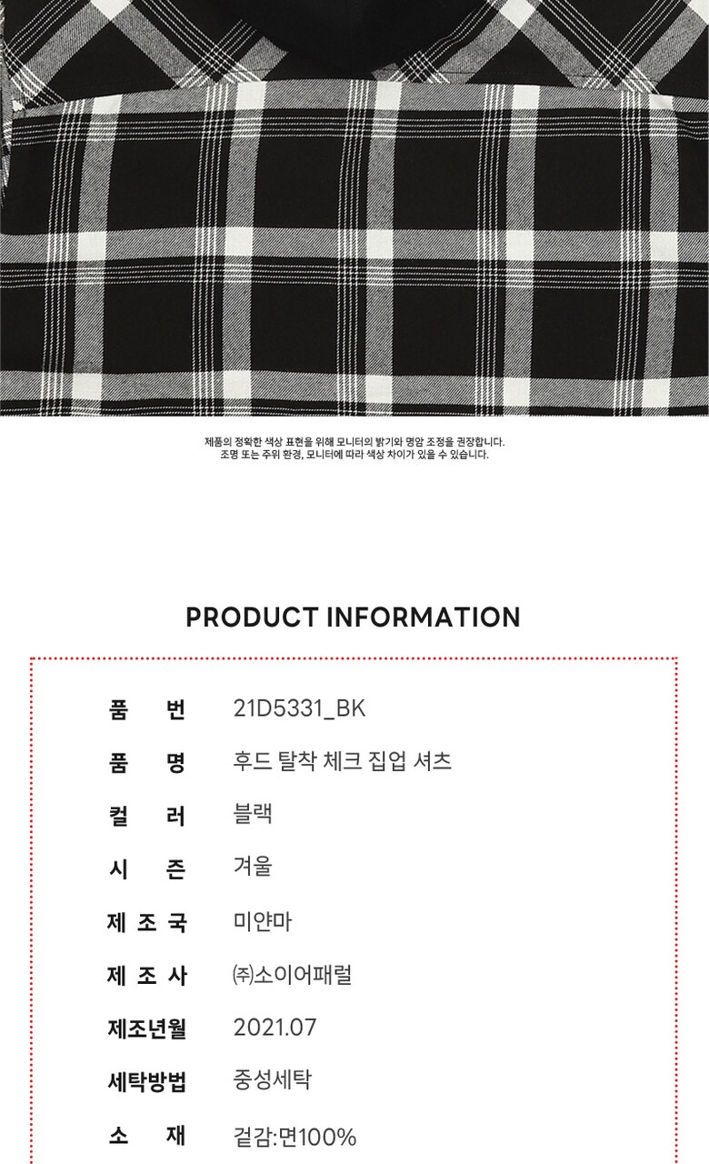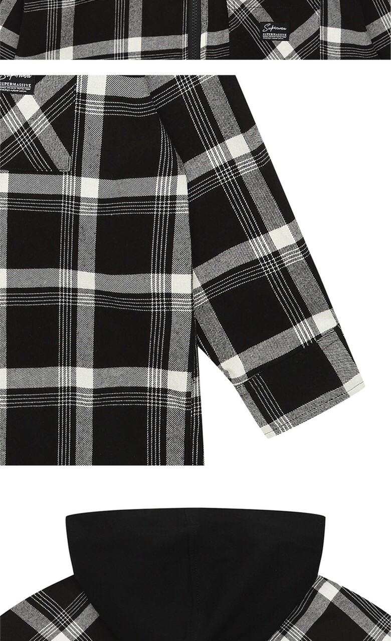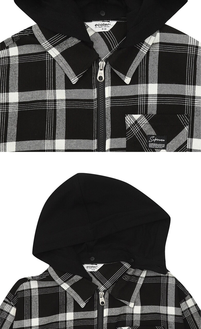 남아 후드 탈착 체크 집업 셔츠 21D5331_BK
