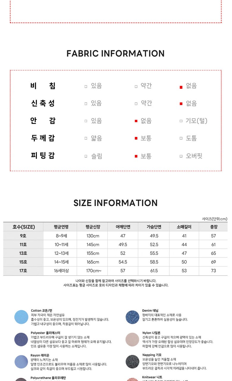 | 1. 제품 소재 (섬유의 조성 또는 혼용률을 백분율로 표시, 기능성인 경우 성적서 또는 허가서) | 겉감:면100% |