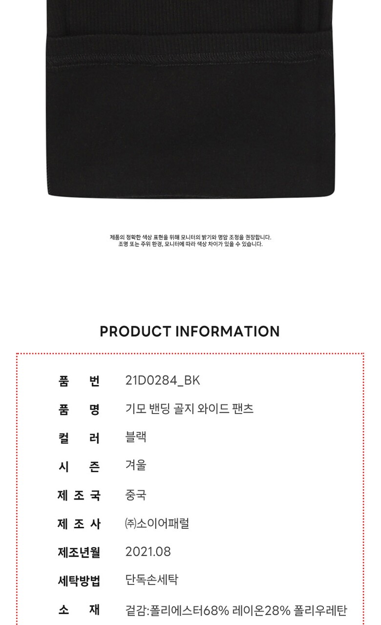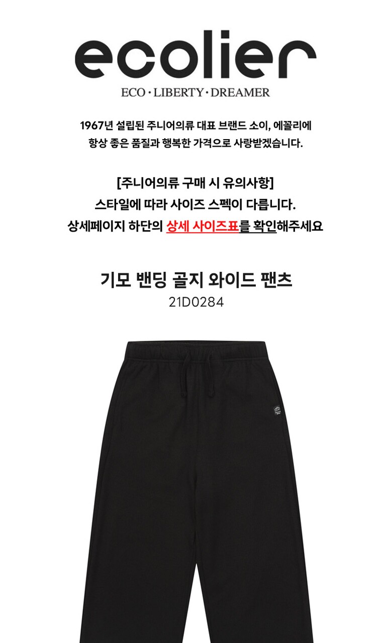 여아 기모 밴딩 골지 와이드 팬츠 21D0284_BK