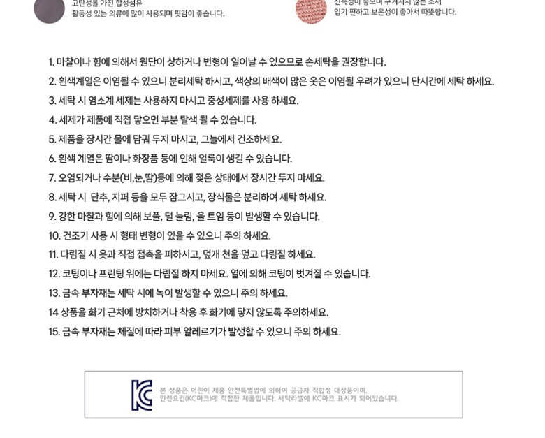 | 6. 세탁방법 및 취급시 주의사항 | 단독손세탁 |