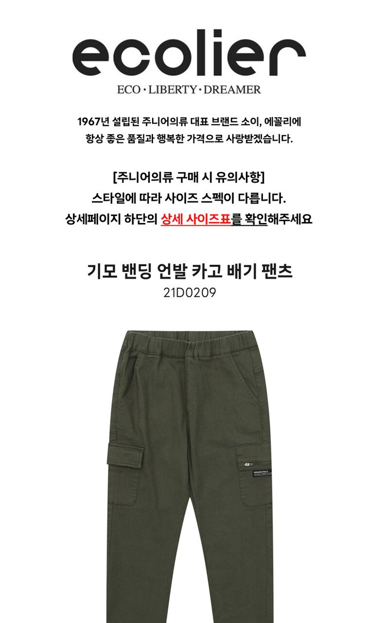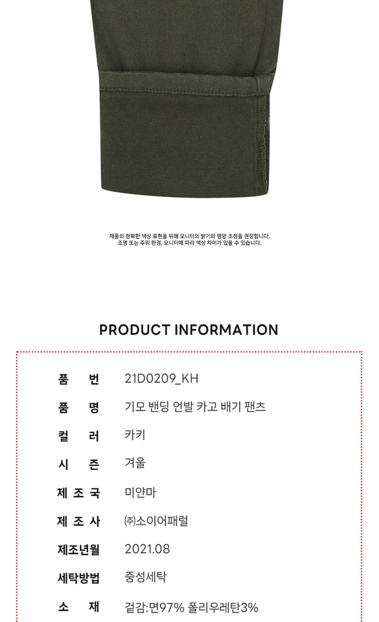 남아 기모 밴딩 언발 카고 배기 팬츠 21D0209_KH