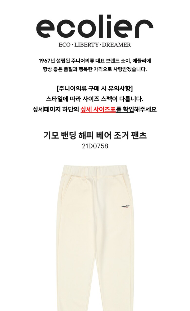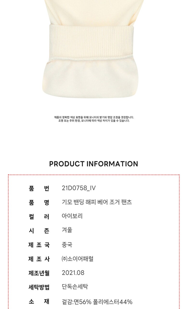 여아 기모 밴딩 해피 베어 조거 팬츠 21D0758_IV