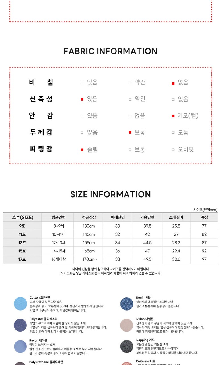 | 1. 제품 소재 (섬유의 조성 또는 혼용률을 백분율로 표시, 기능성인 경우 성적서 또는 허가서) | 겉감:면56% 폴리에스터44% |