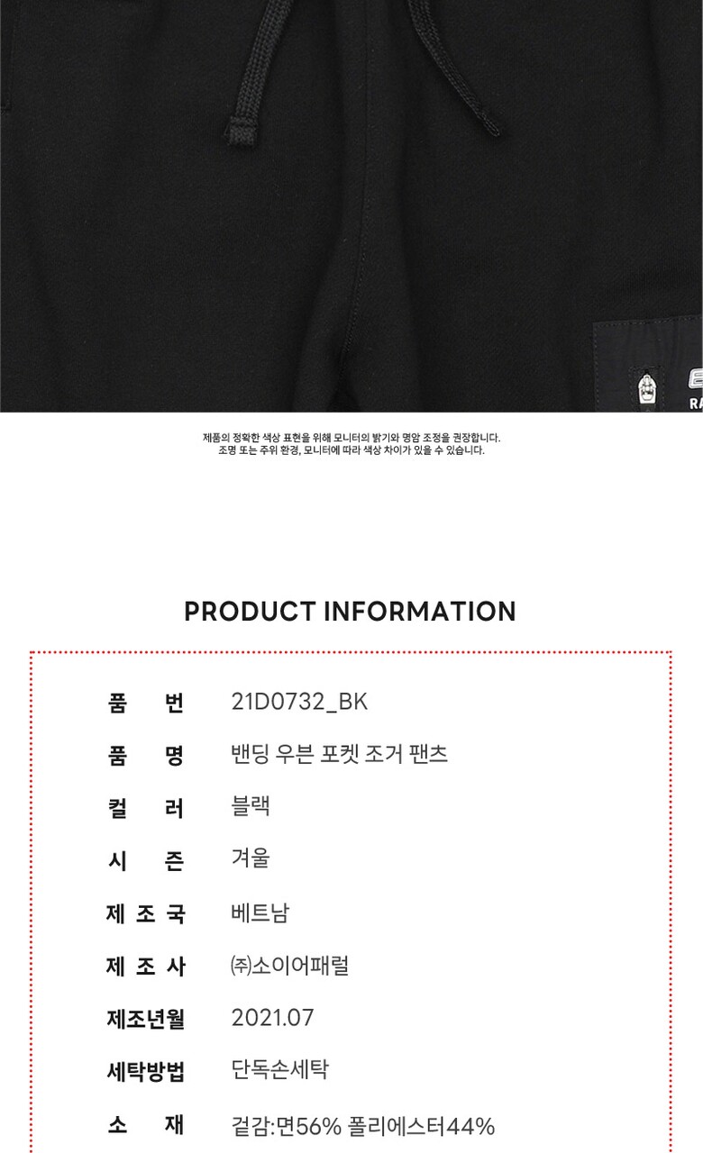 남아 밴딩 우븐 포켓 조거 팬츠 21D0732_BK