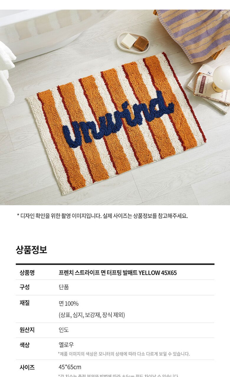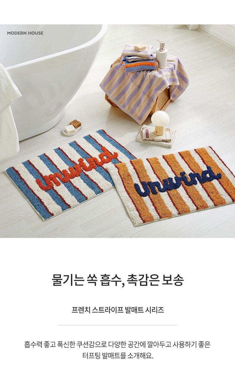 모던하우스 프렌치 스트라이프 면 터프팅 발매트 YELLOW 45X65 BG2025035