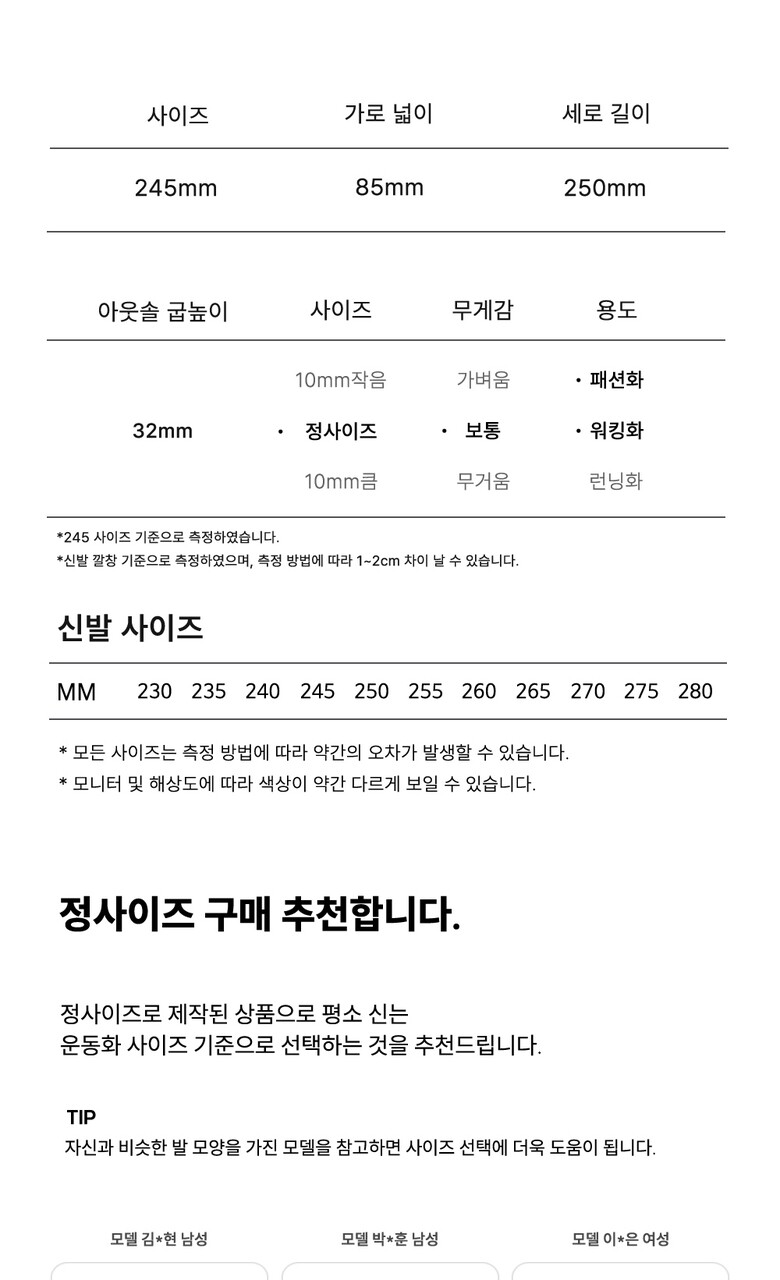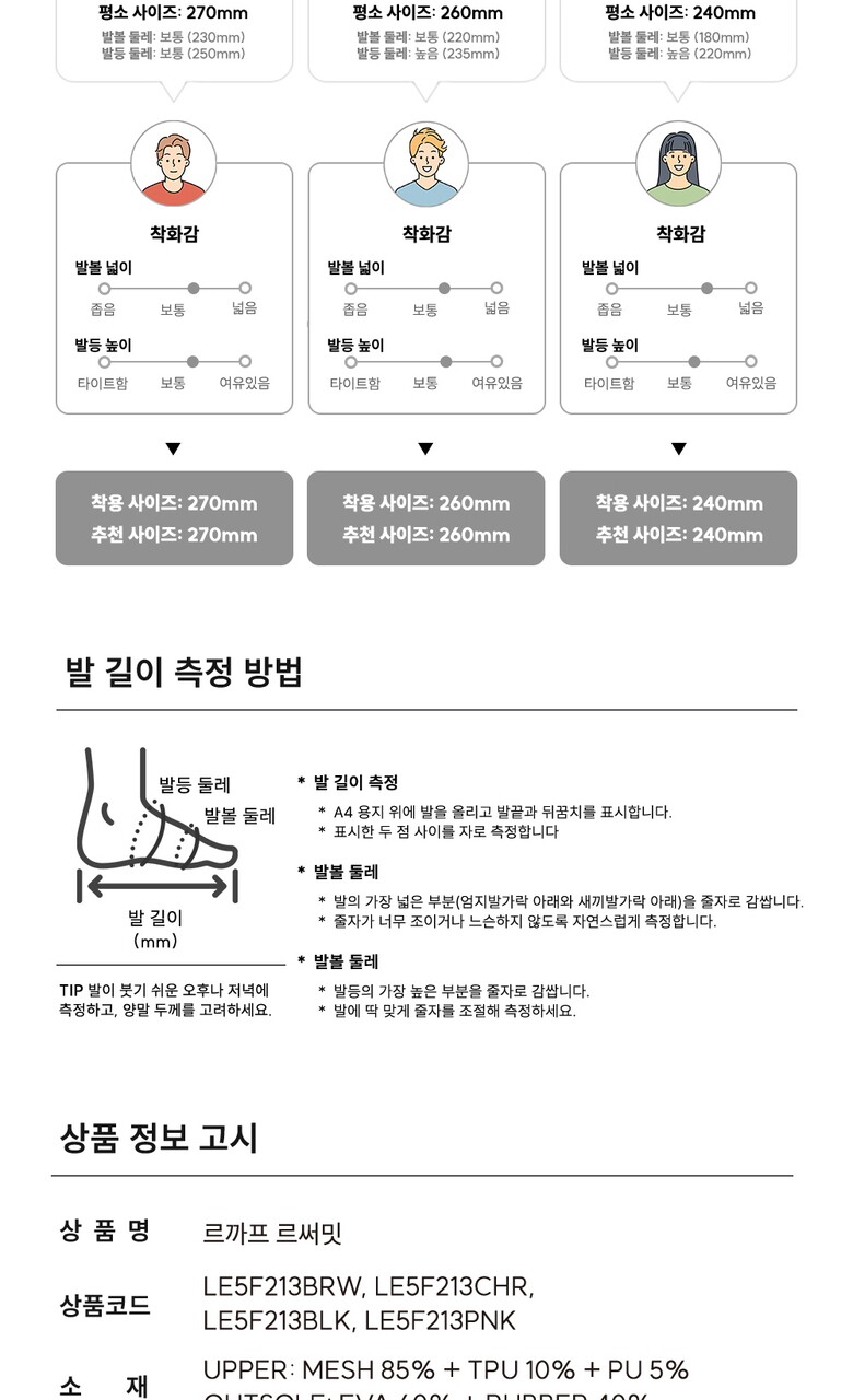 1. 제품 소재 (운동화인 경우에는 겉감, 안감을 구분하여 표시) 상세페이지참조