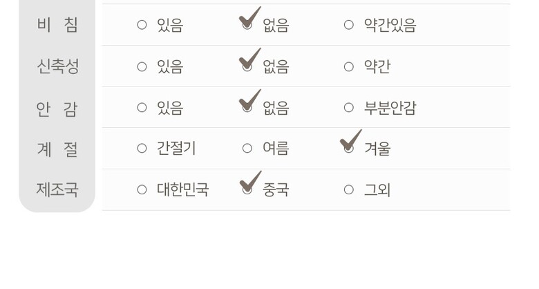 1. 제품 소재 (섬유의 조성 또는 혼용률을 백분율로 표시, 기능성인 경우 성적서 또는 허가서) | 상세페이지 참조 |