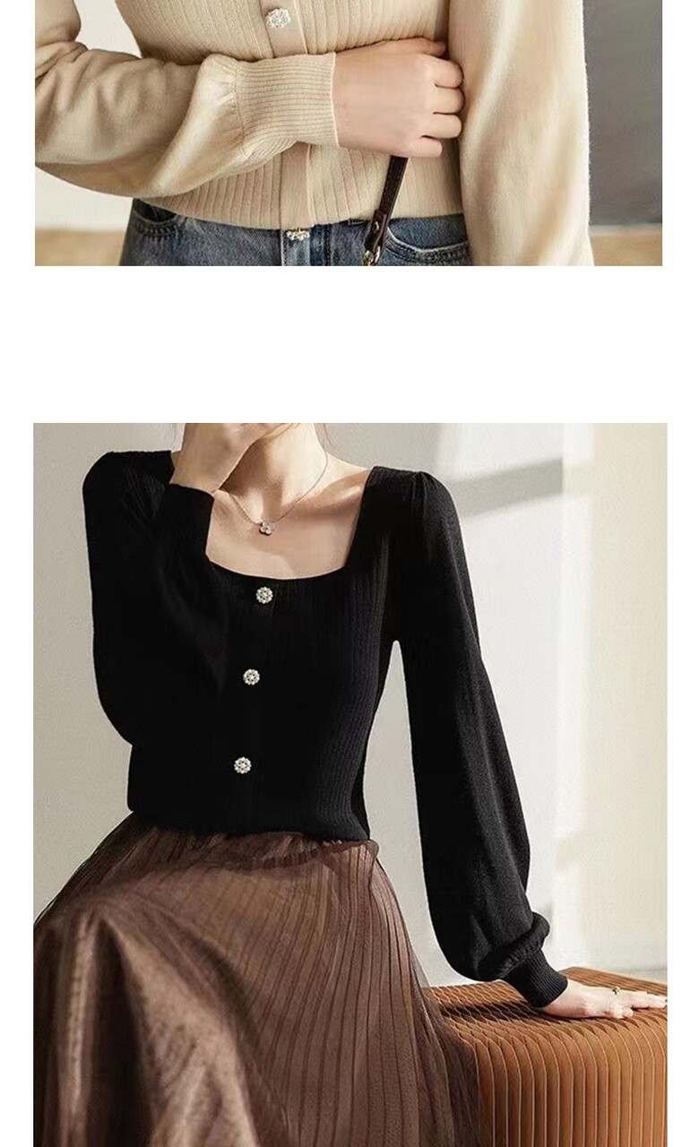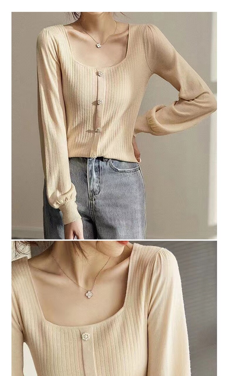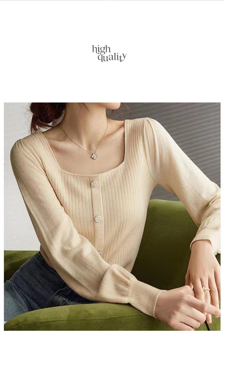 [키리앙] 넨츠 스퀘어넥 단추 셔링 니트