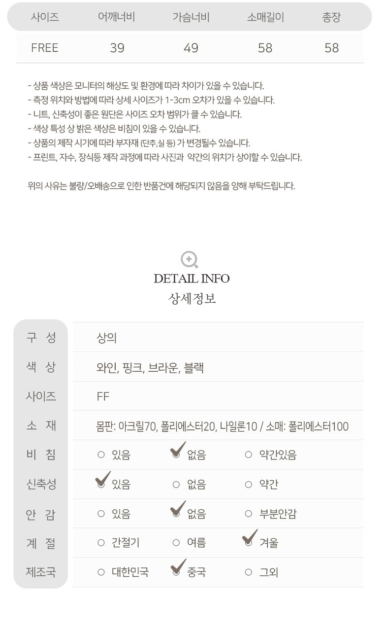 1. 제품 소재 (섬유의 조성 또는 혼용률을 백분율로 표시, 기능성인 경우 성적서 또는 허가서) | 상세페이지 참조 |