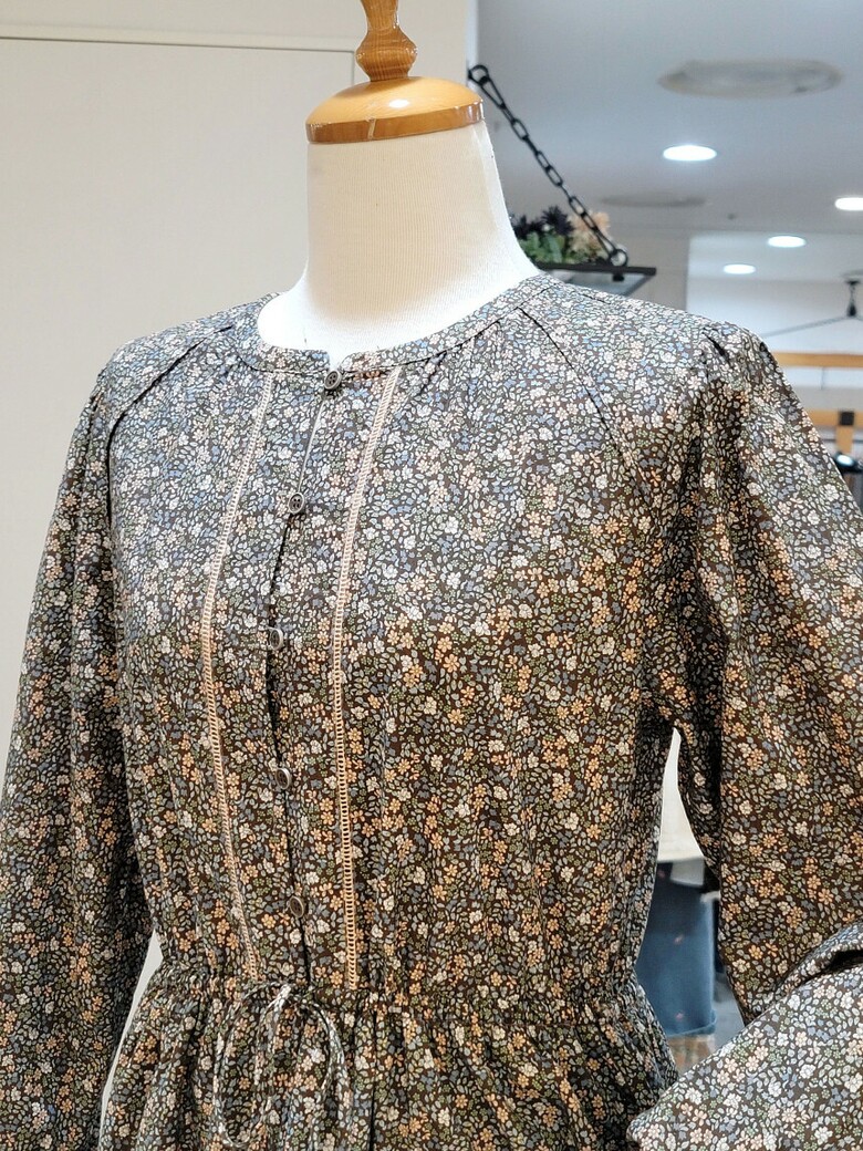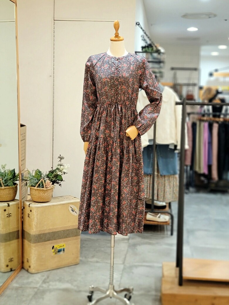 편안한 실루엣의 A 라인 코튼 원피스입니다.