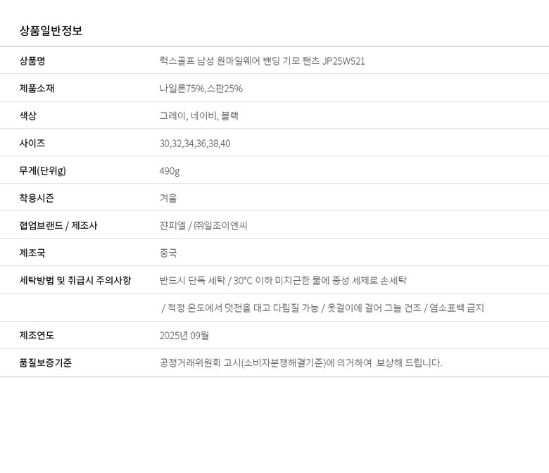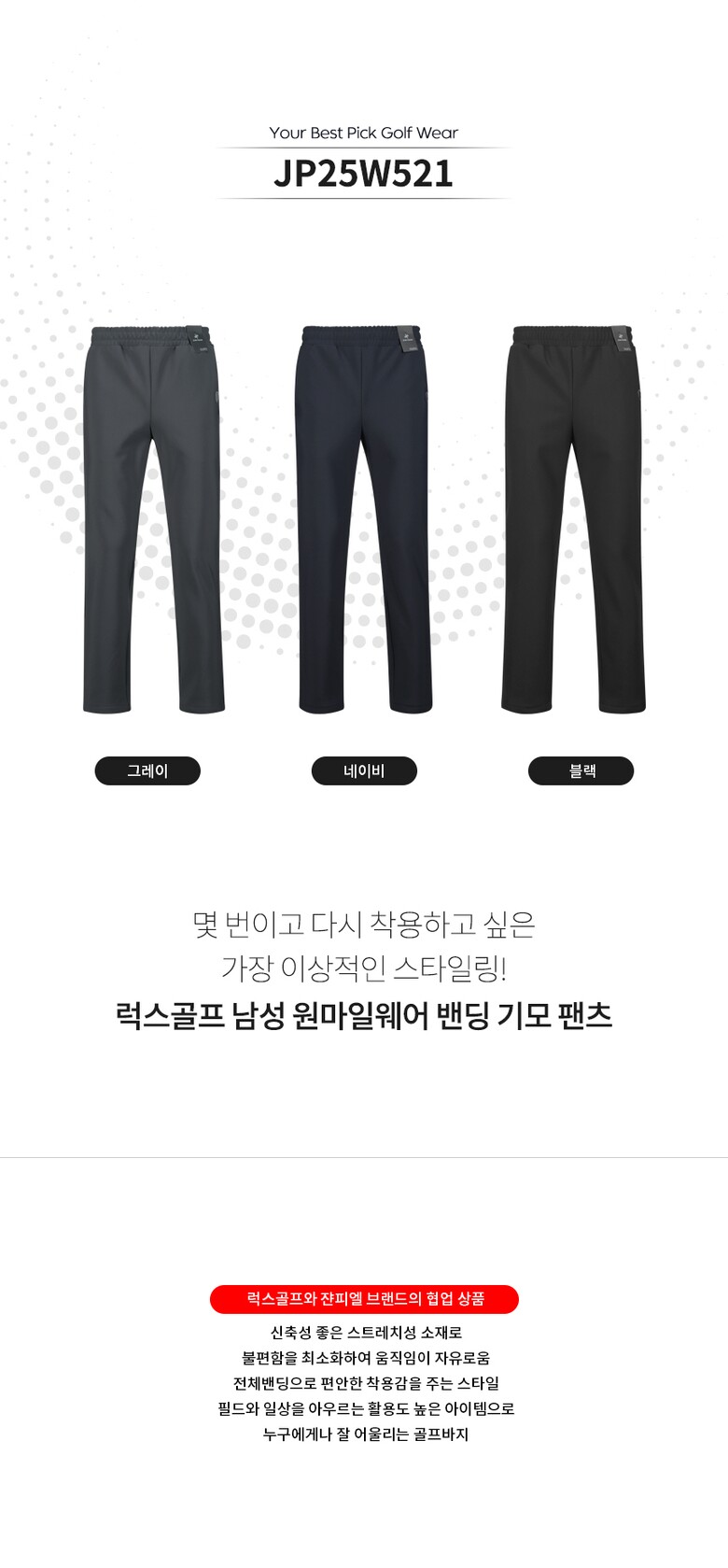 럭스골프 남성 원마일웨어 밴딩 기모 팬츠 JP25W521