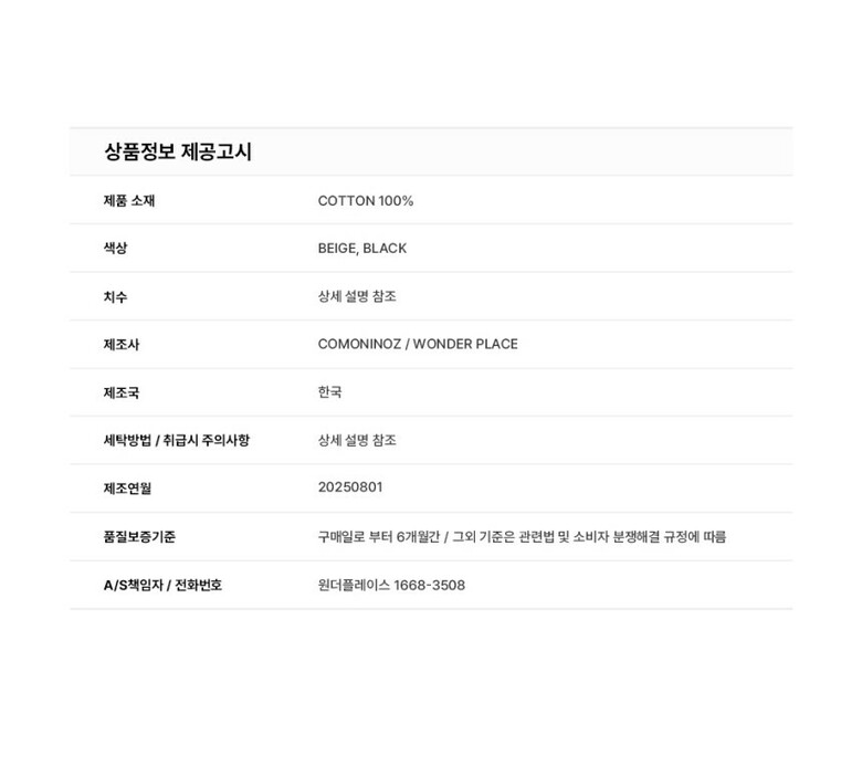 - 겉감 : 면 100%