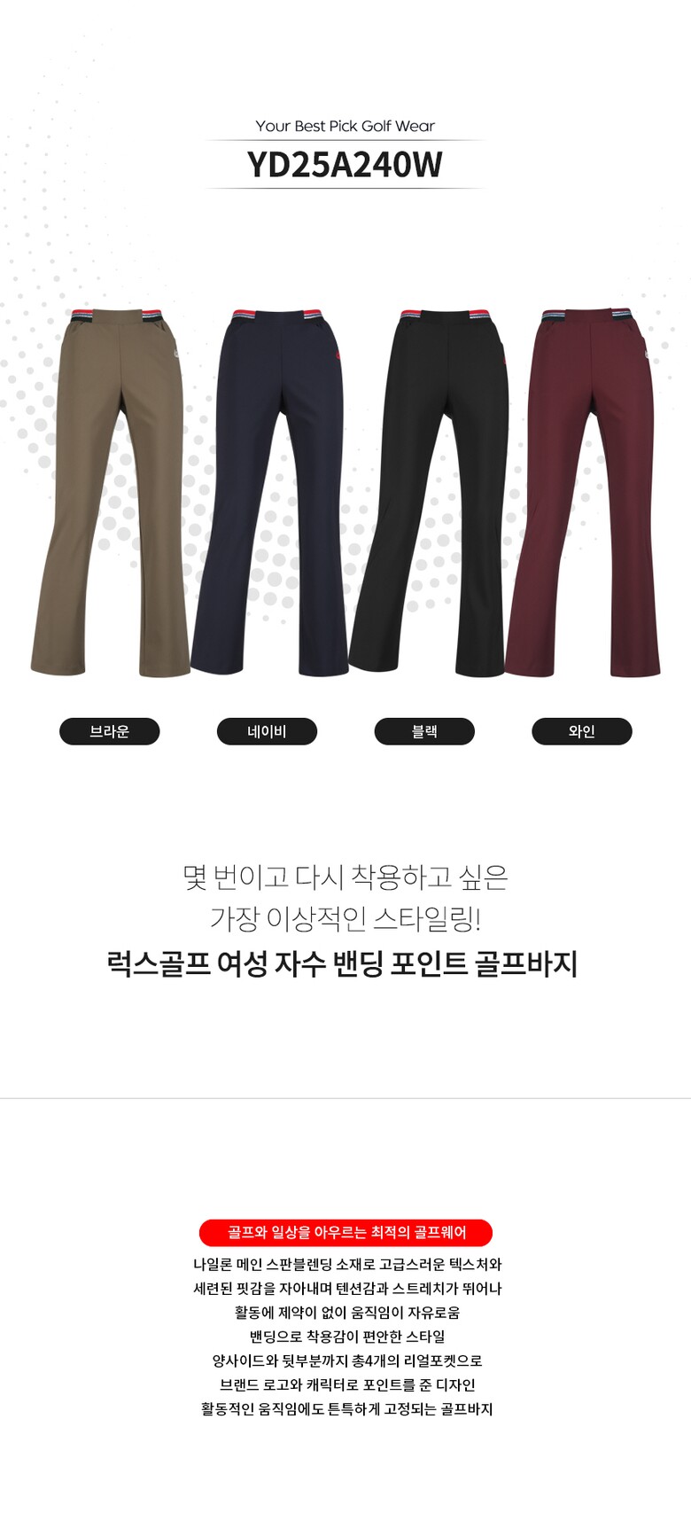 골피아 YD25A240W 여성 자수 밴딩 포인트 골프바지