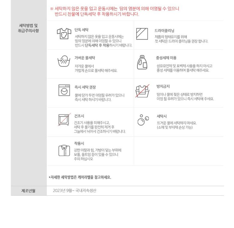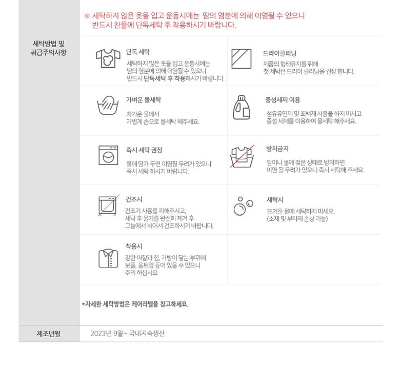 6. 세탁방법 및 취급시 주의사항 | 상품 이미지 참고 |