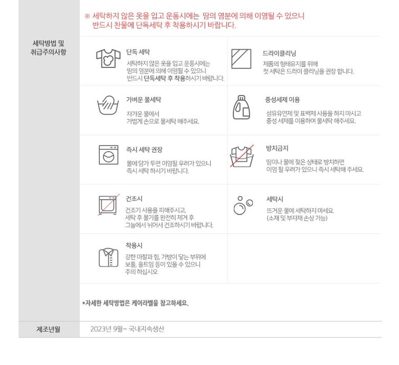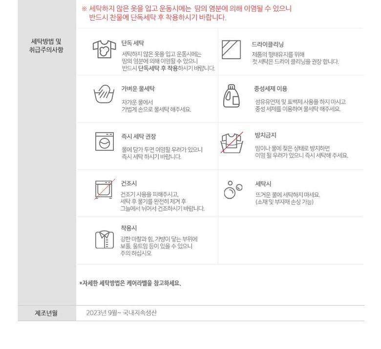 6. 세탁방법 및 취급시 주의사항 상품 이미지 참고
