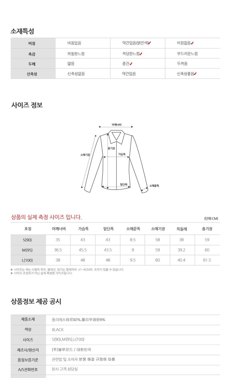 • 처음 배송된 상품상태와 다를 경우(세탁/착용 후 외출하신 경우) 반품이 불가합니다.