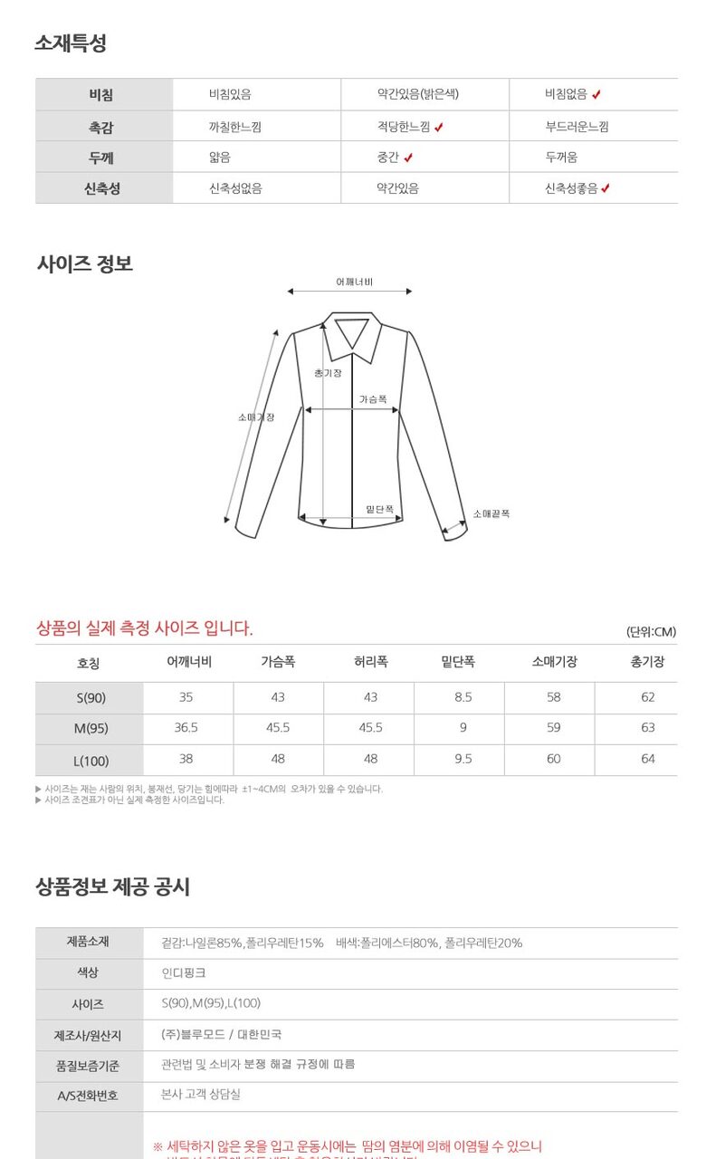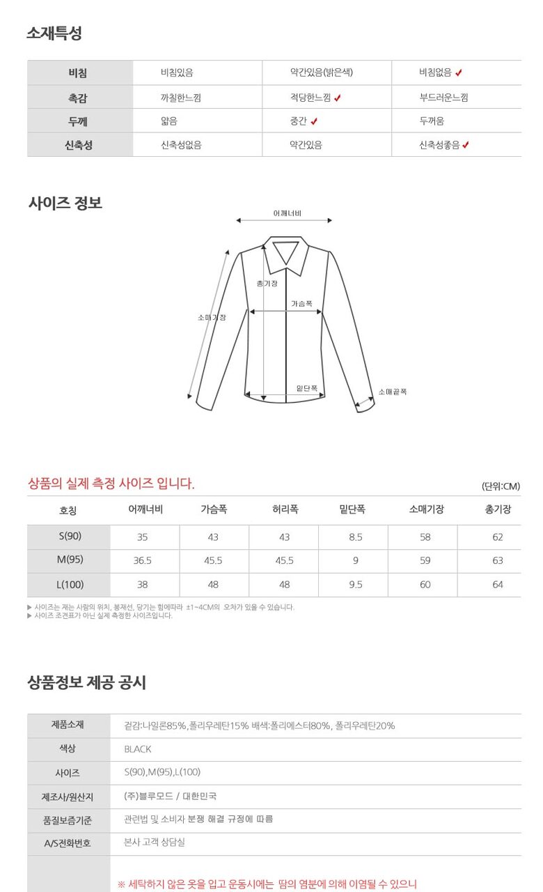 1. 제품 소재 (섬유의 조성 또는 혼용률을 백분율로 표시, 기능성인 경우 성적서 또는 허가서) 상품 이미지 참고