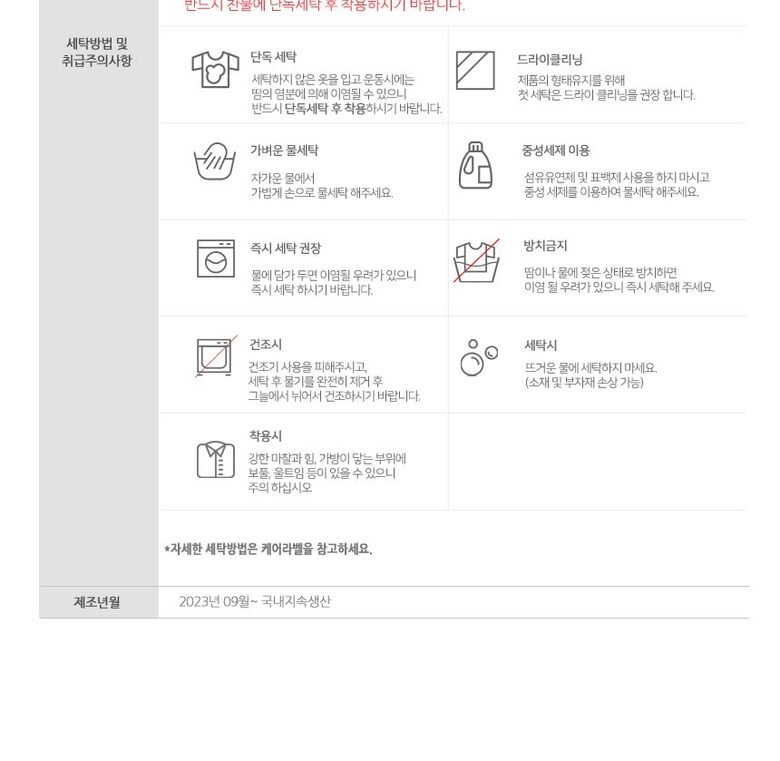 6. 세탁방법 및 취급시 주의사항 상품 이미지 참고