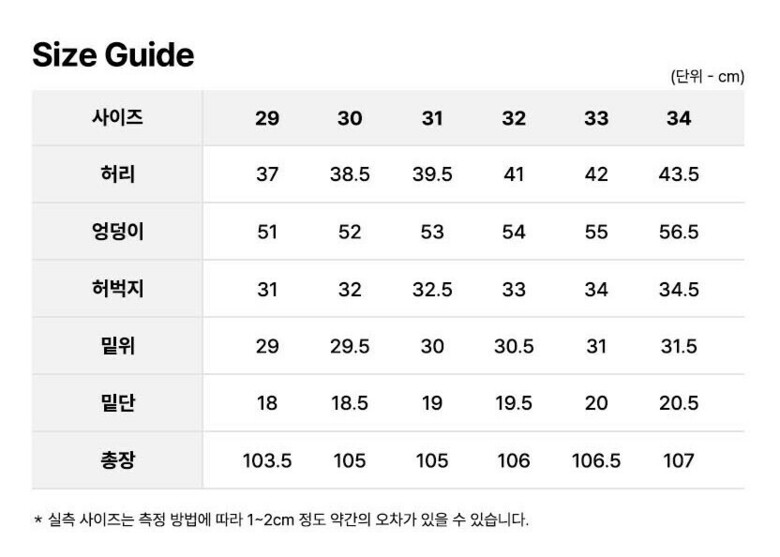 슬림하게 입는기준 평소30사이즈입으시면 29사이즈로 선택하시면 좋습니다
