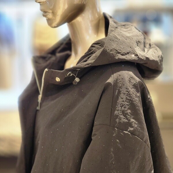 BFW5PNYP9250_허리스트링 비즈장식 집업 후드점퍼