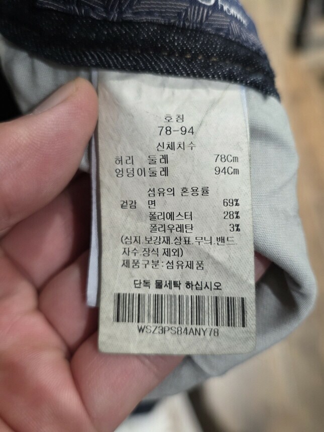 겉감 : 면 69% , 폴리에스터 28% , 폴리우레탄 3%