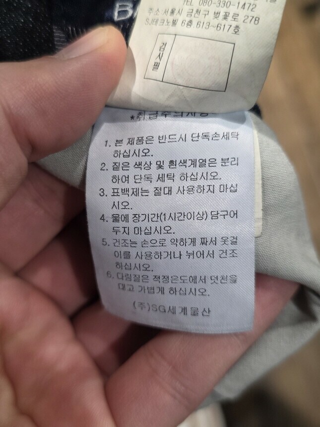 | 6. 세탁방법 및 취급시 주의사항 | 단독 물세탁 하십시오 |