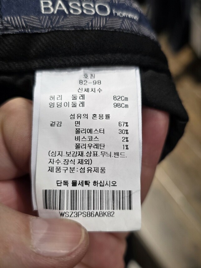 겉감 : 면 67% , 폴리에스터 30% , 비스코스 2% , 폴리우레탄 1%