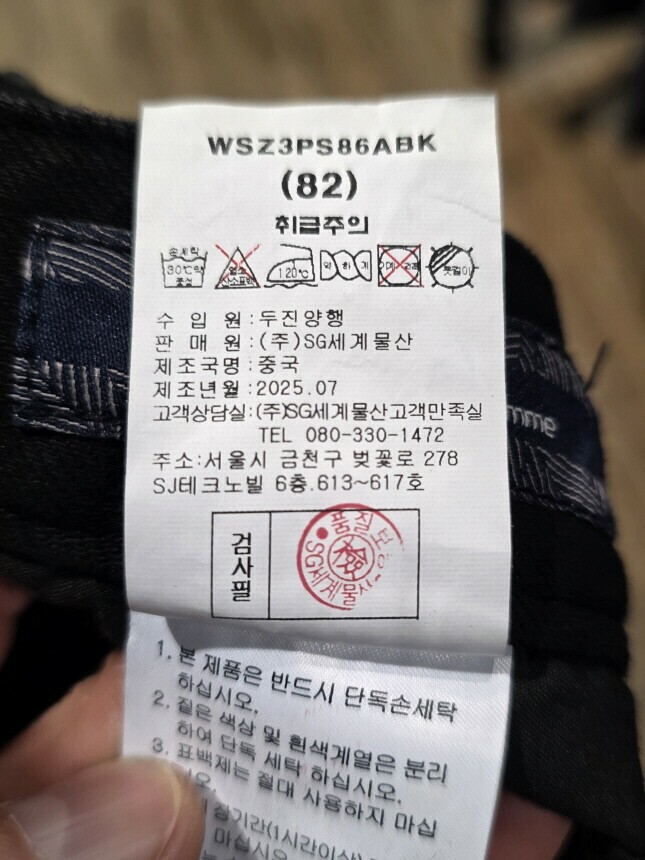 | 6. 세탁방법 및 취급시 주의사항 | 단독 물세탁 하십시오 |