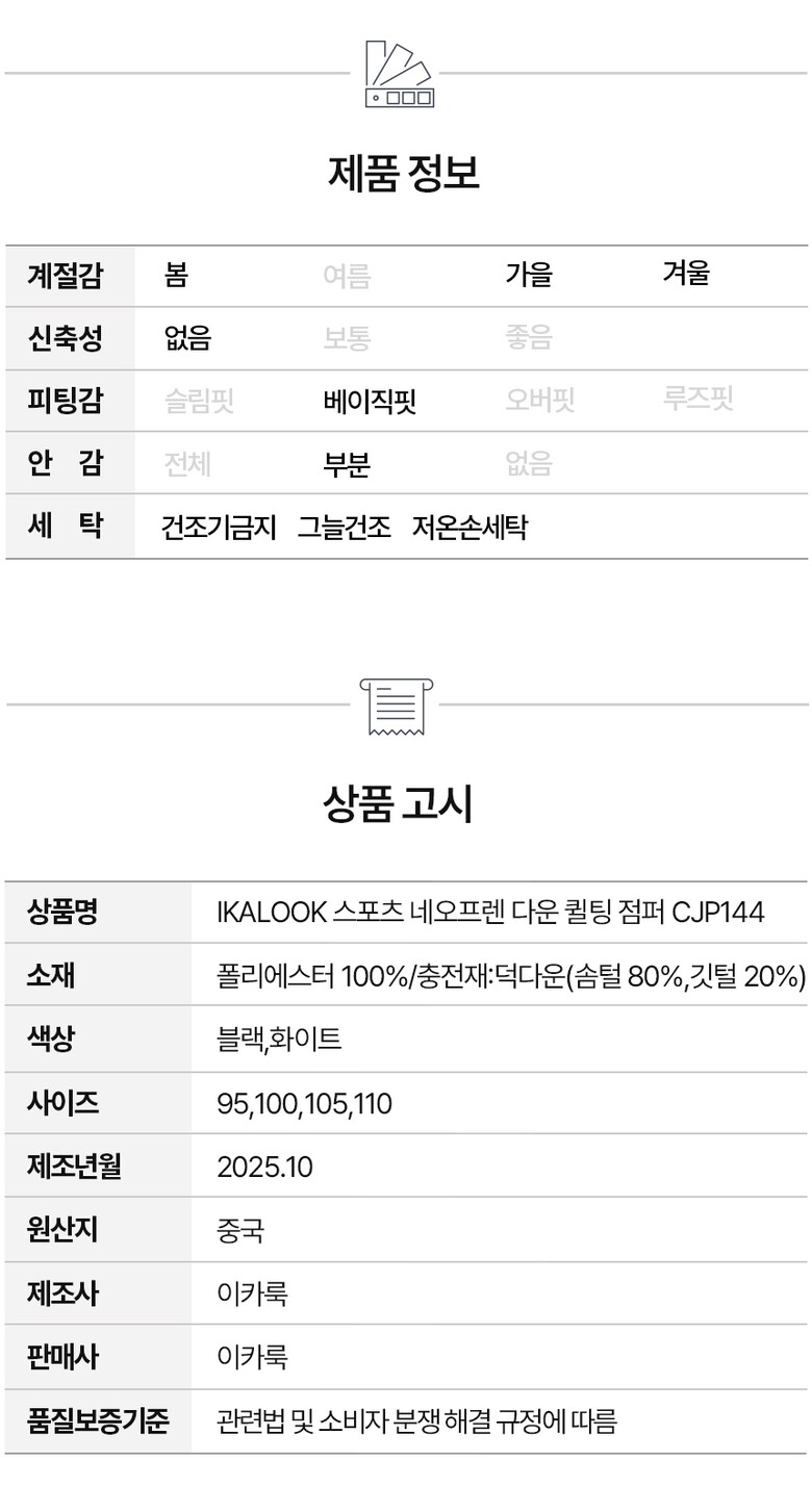 IKALOOK 스포츠 네오프렌 다운 퀼팅 점퍼 CJP144