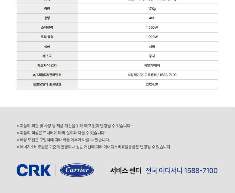 11. A/S책임자와전화번호 | 씨알케이(주) 1588-7100 |
