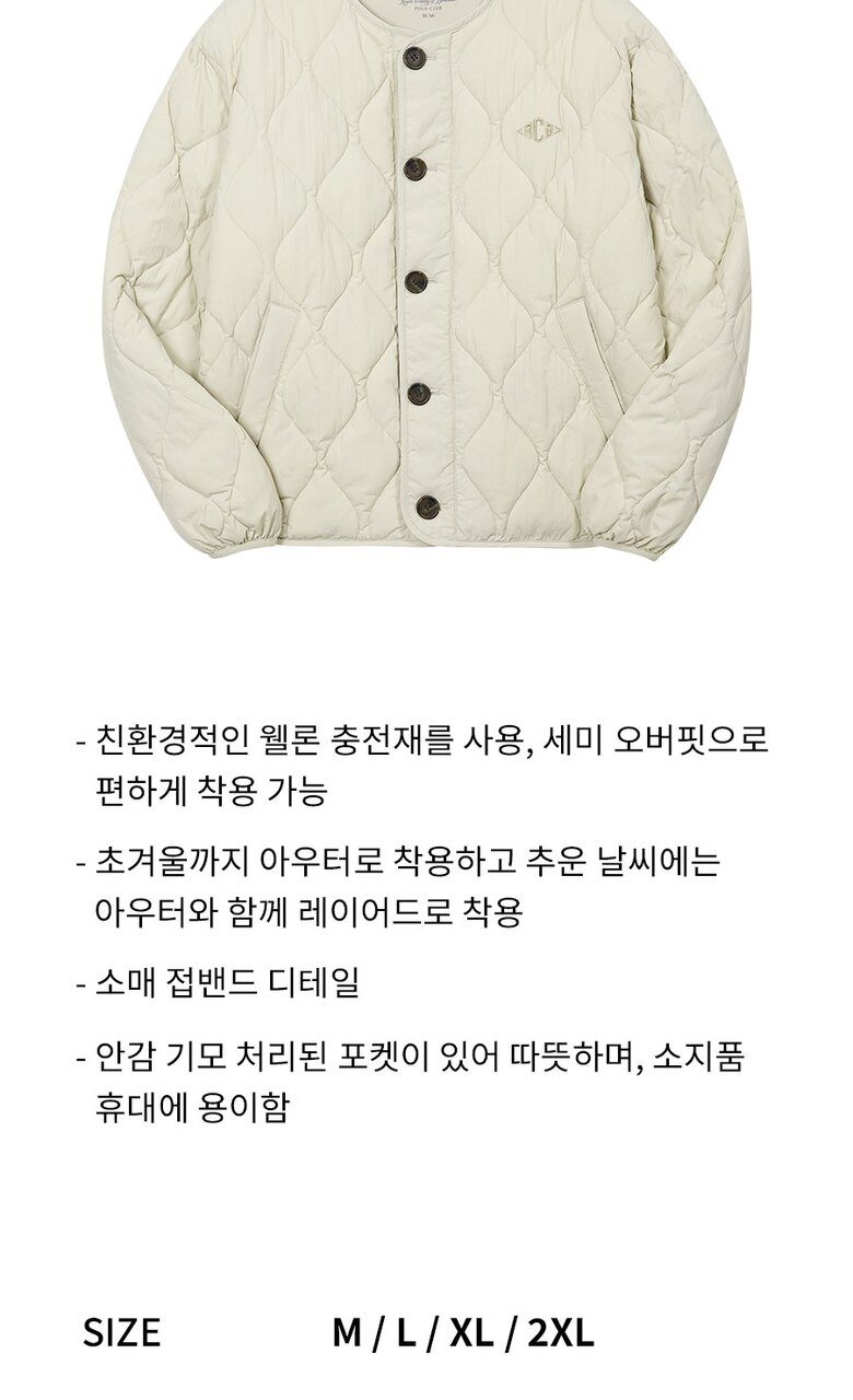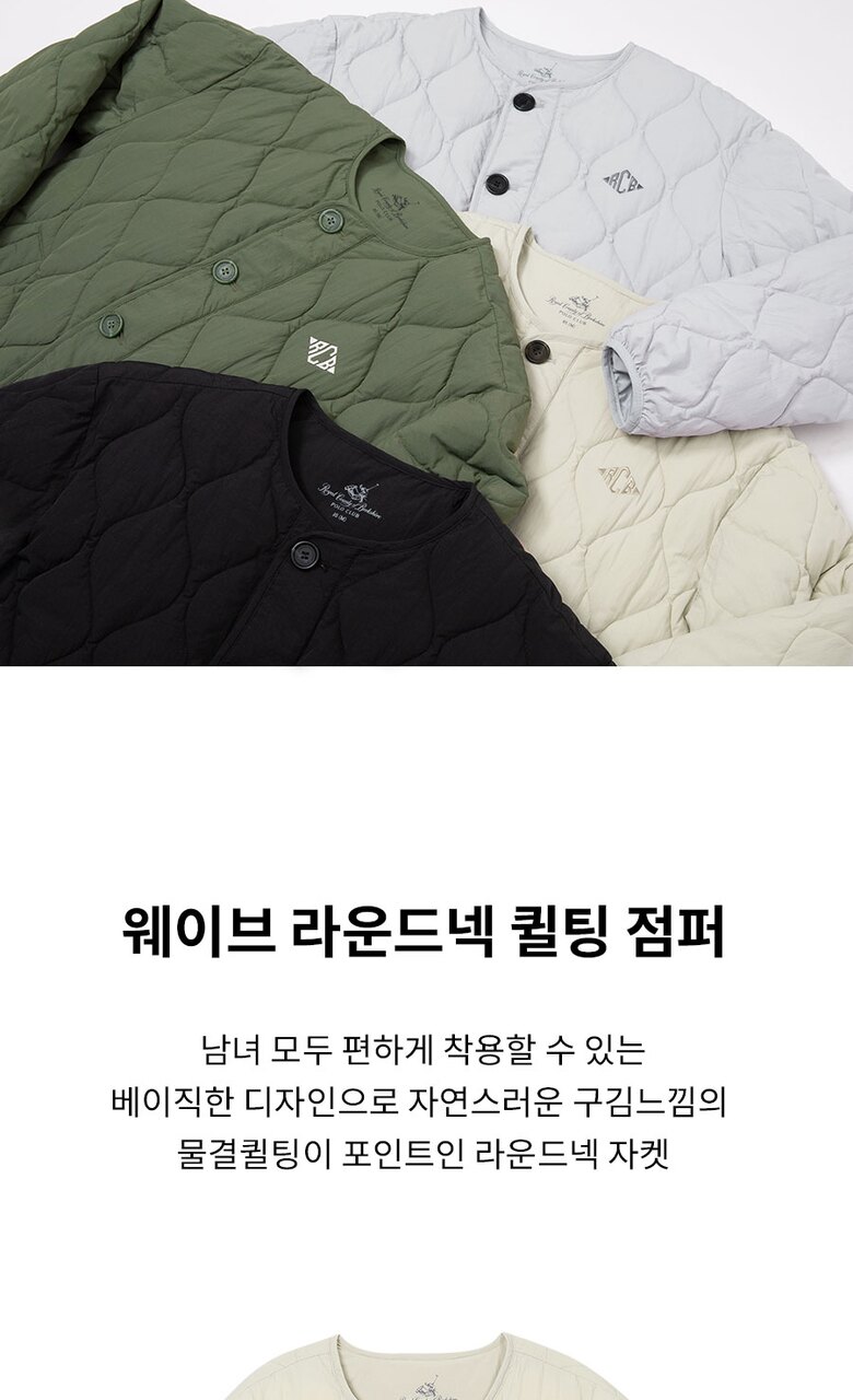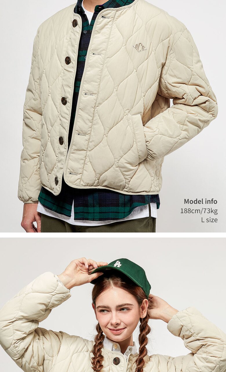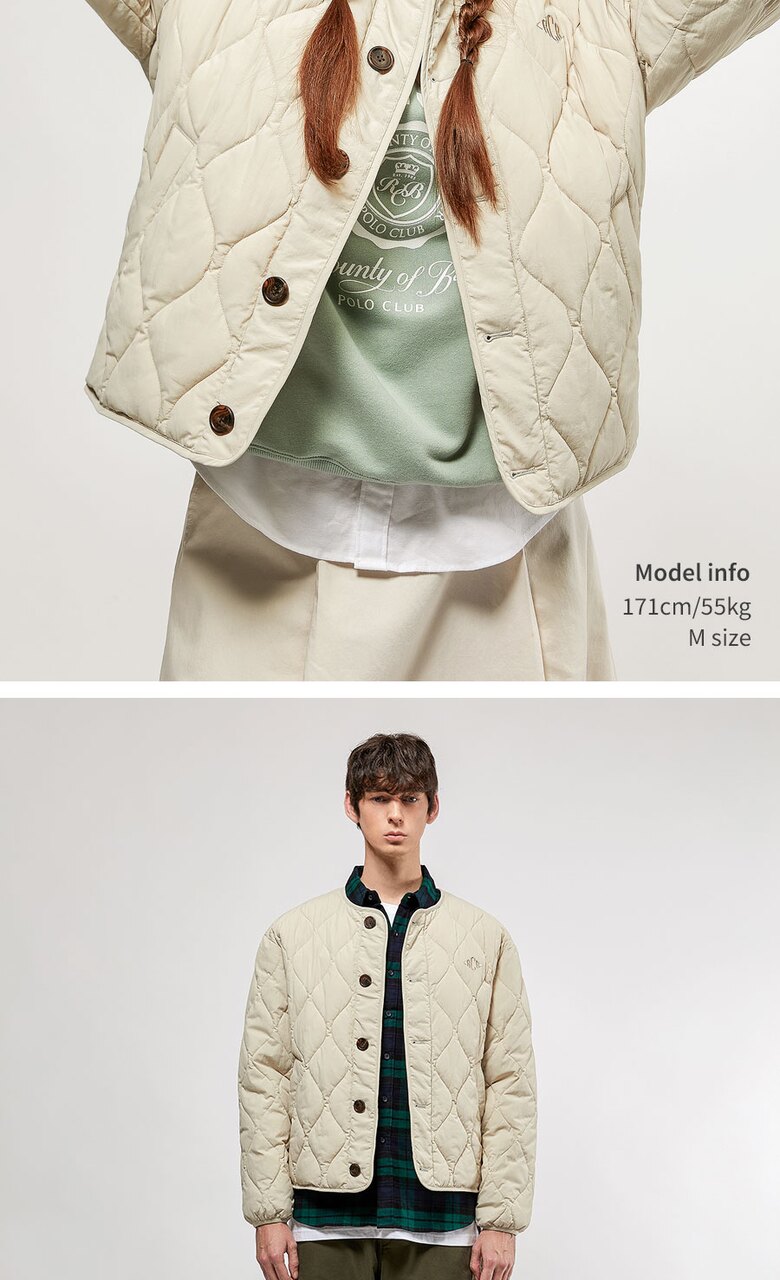 RCB폴로클럽 남녀공용 웨이브 라운드넥 퀼팅 점퍼 크림베이지