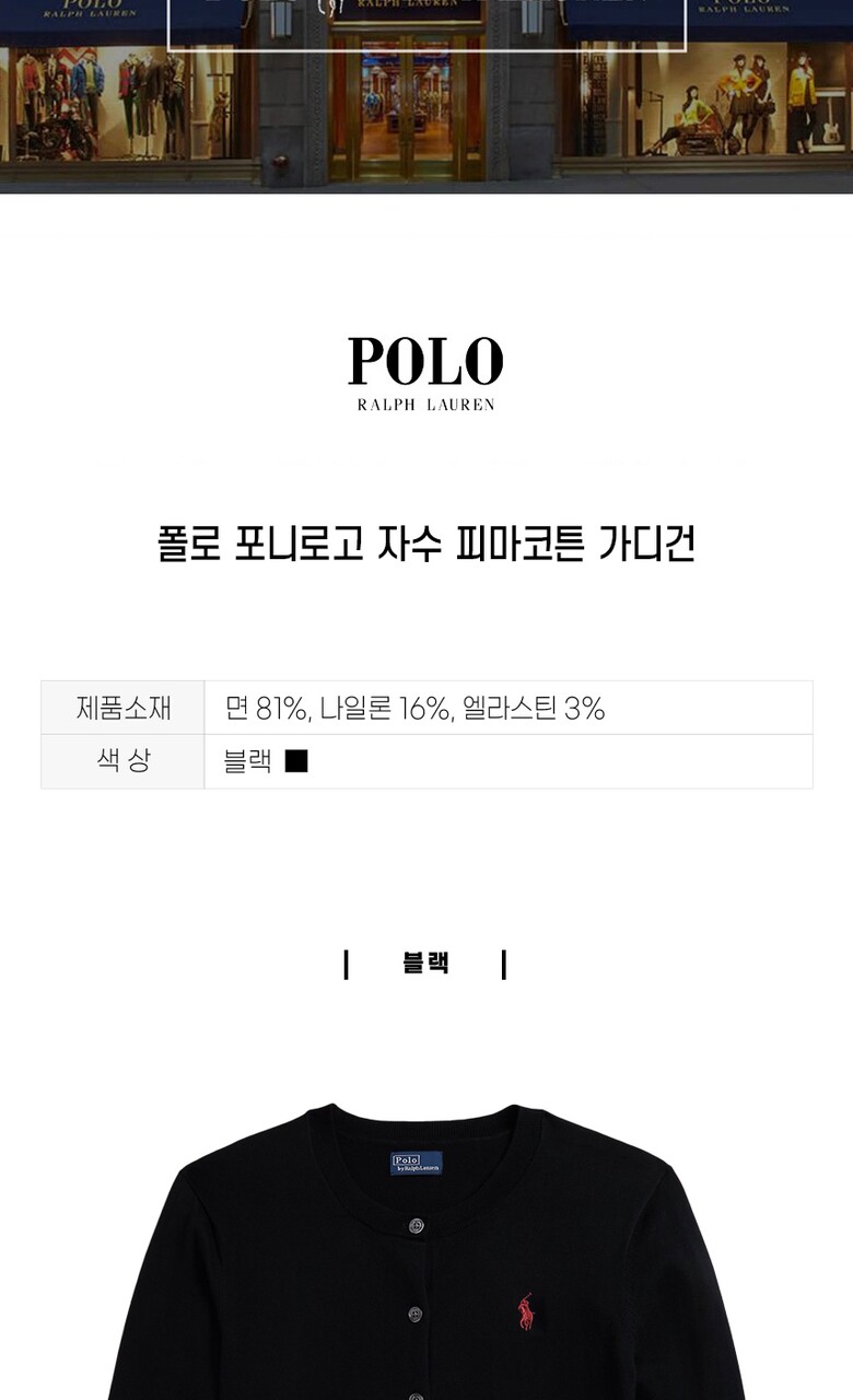 폴로 랄프로렌 여자 포니로고 자수 피마코튼 가디건