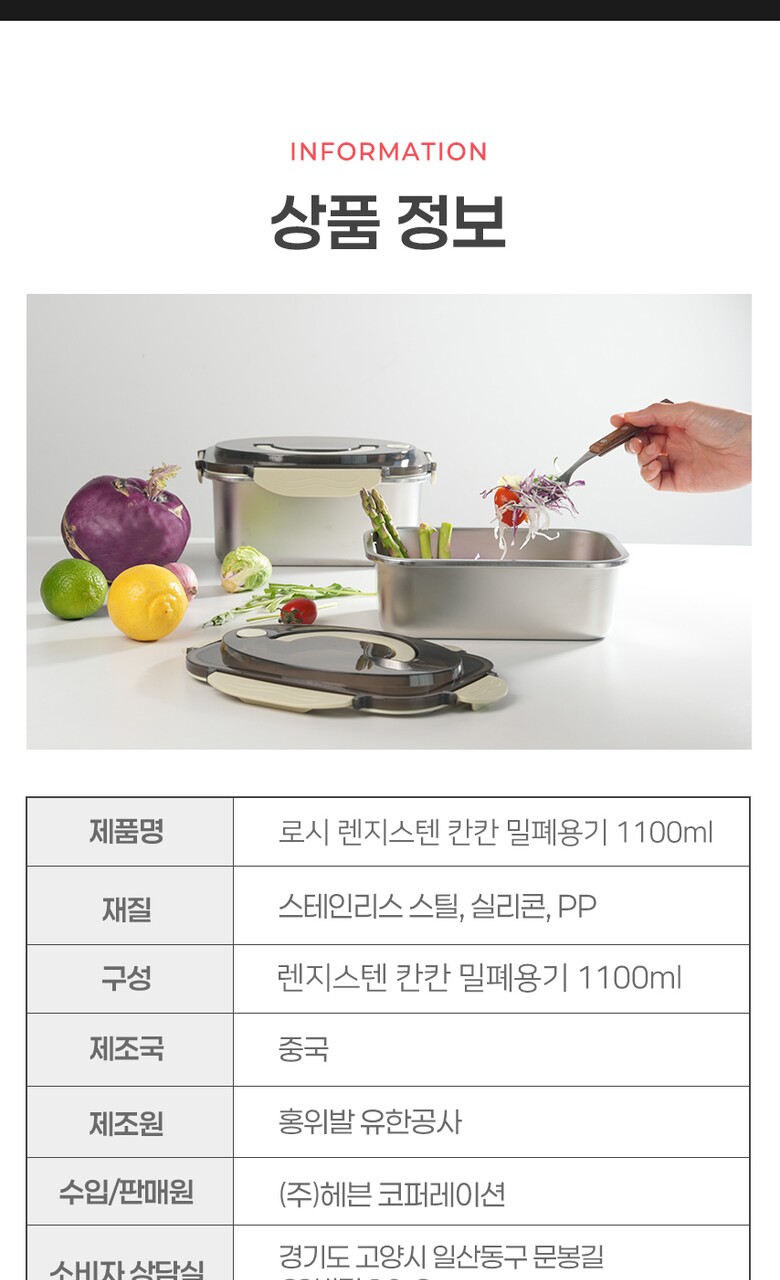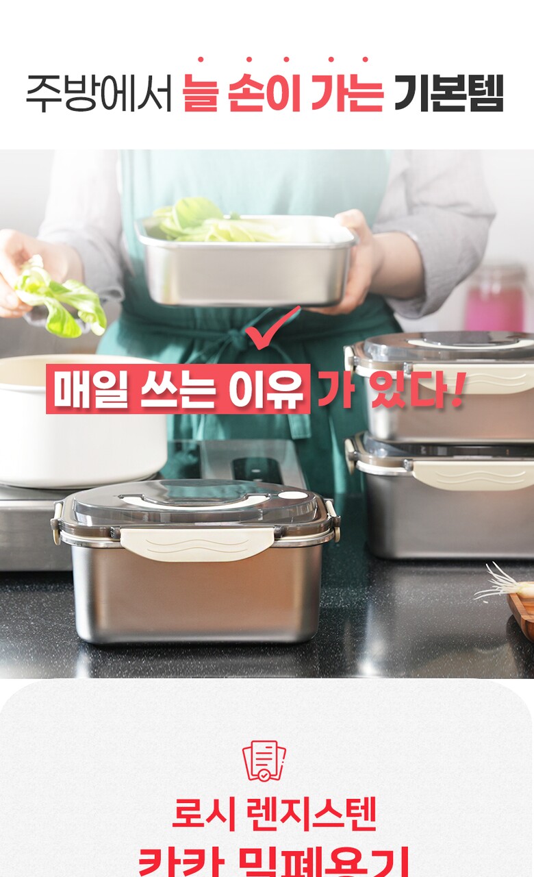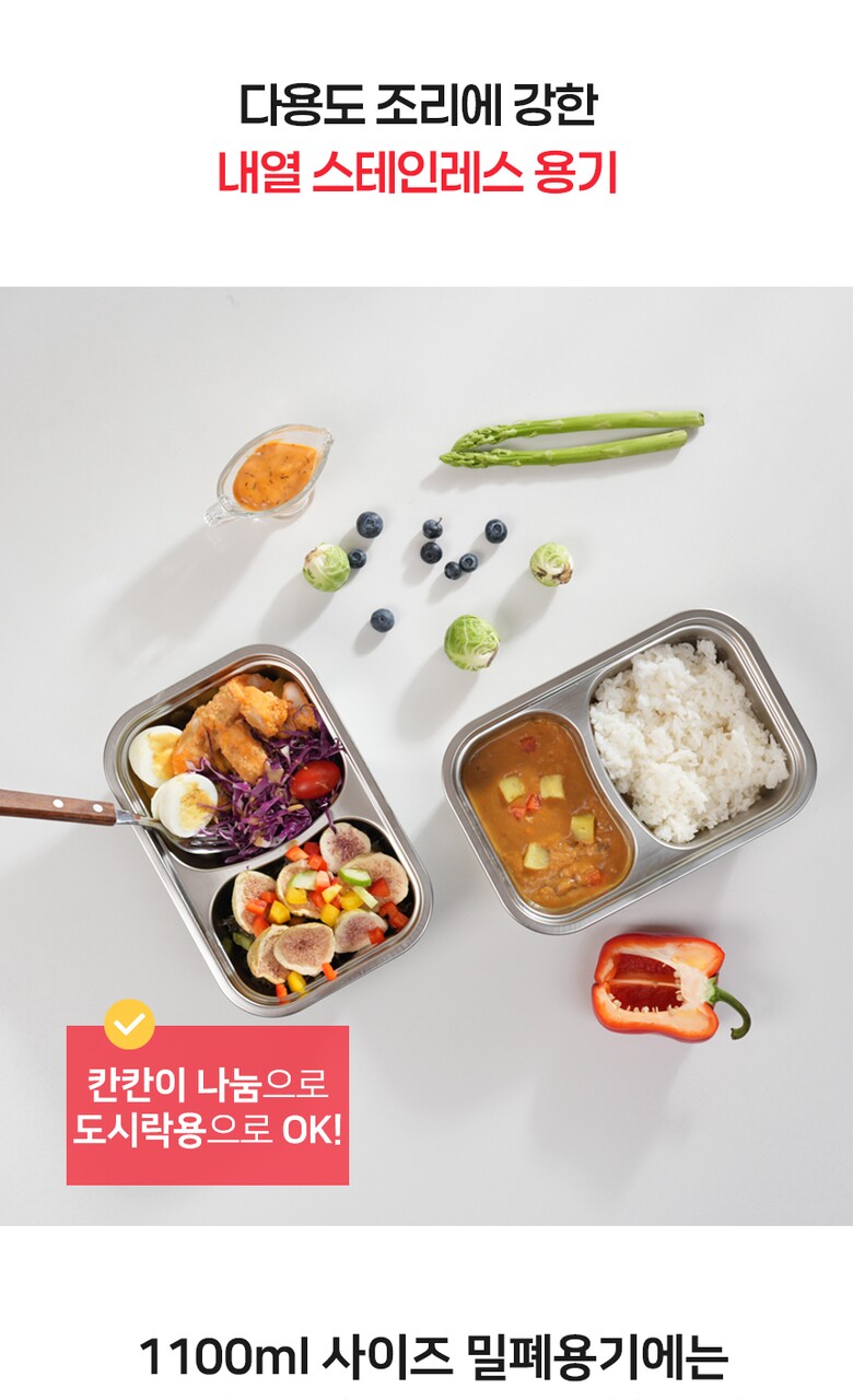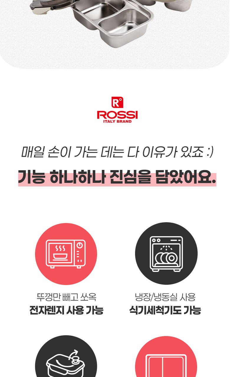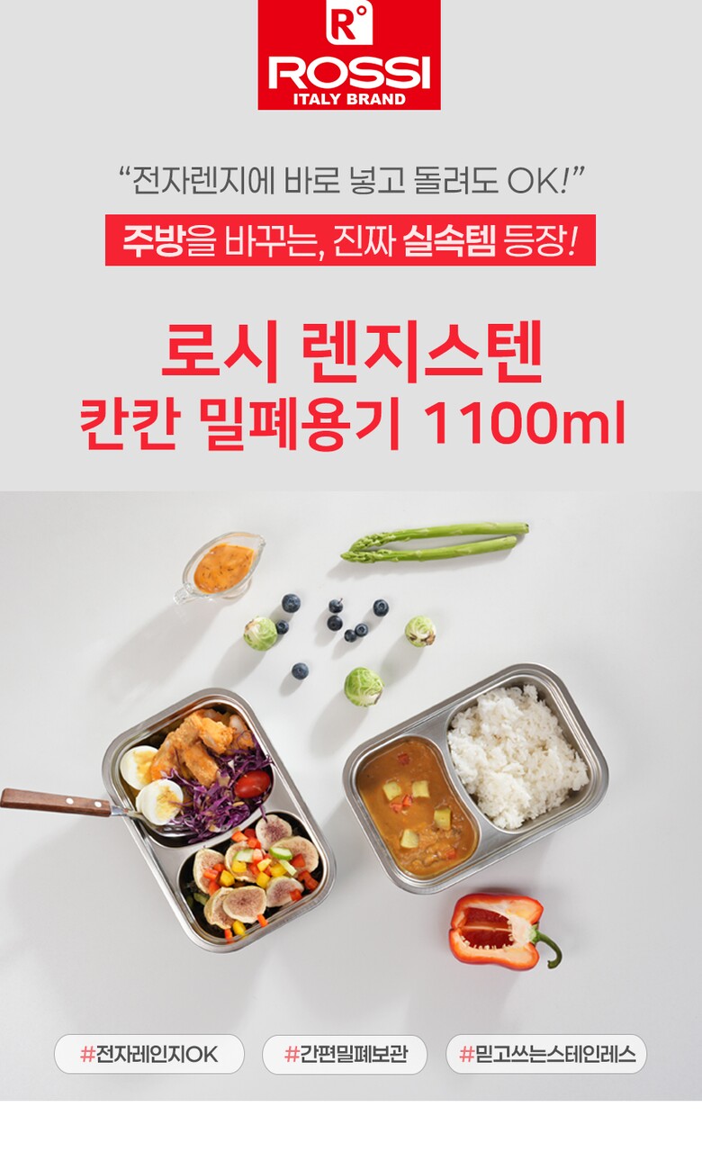 이태리 로시 렌지스텐 칸칸 밀폐용기 1100ml