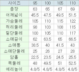 | 3. 치수 | 95,100,105,110 |