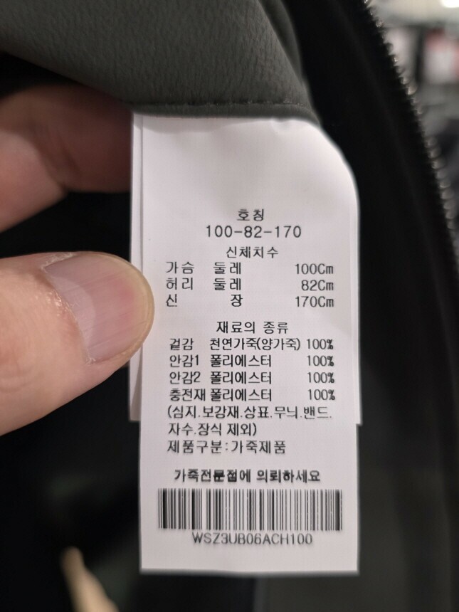 겉감 : 천연가죽(양가죽) 100%