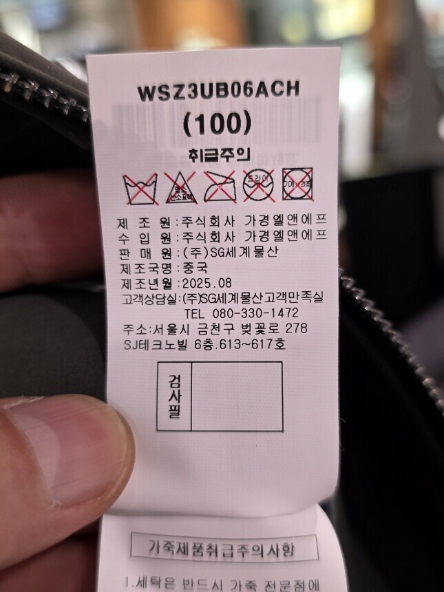 안감2 : 폴리에스터 100%
