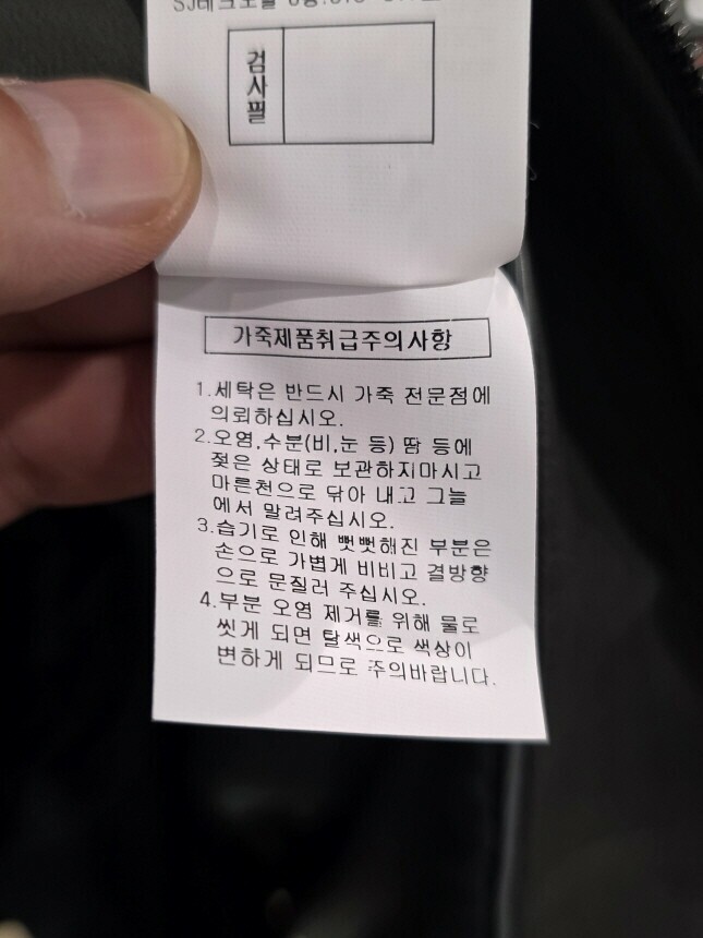 | 6. 세탁방법 및 취급시 주의사항 | 가죽 전문점에 의뢰하세요. |
