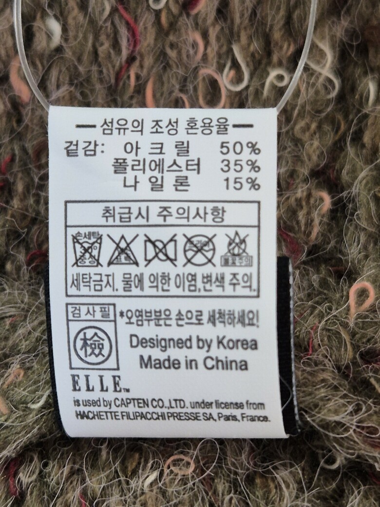| 2. 소재 | 겉감:아크릴 50%, 폴리에스테르 35%, 나일론 15% |