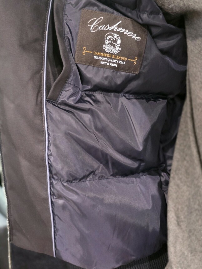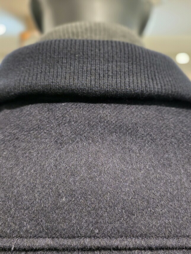 | 1. 제품 소재 (섬유의 조성 또는 혼용률을 백분율로 표시, 기능성인 경우 성적서 또는 허가서) | 겉감 : 모 90% , 캐시미어 10% 배색 : 모 100% 안감1 : 나일론 100% |
